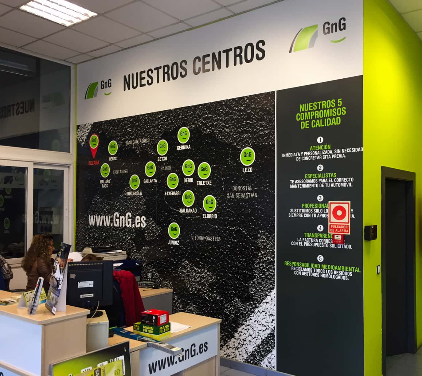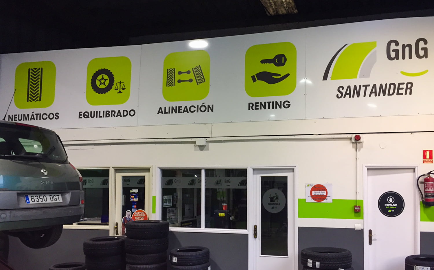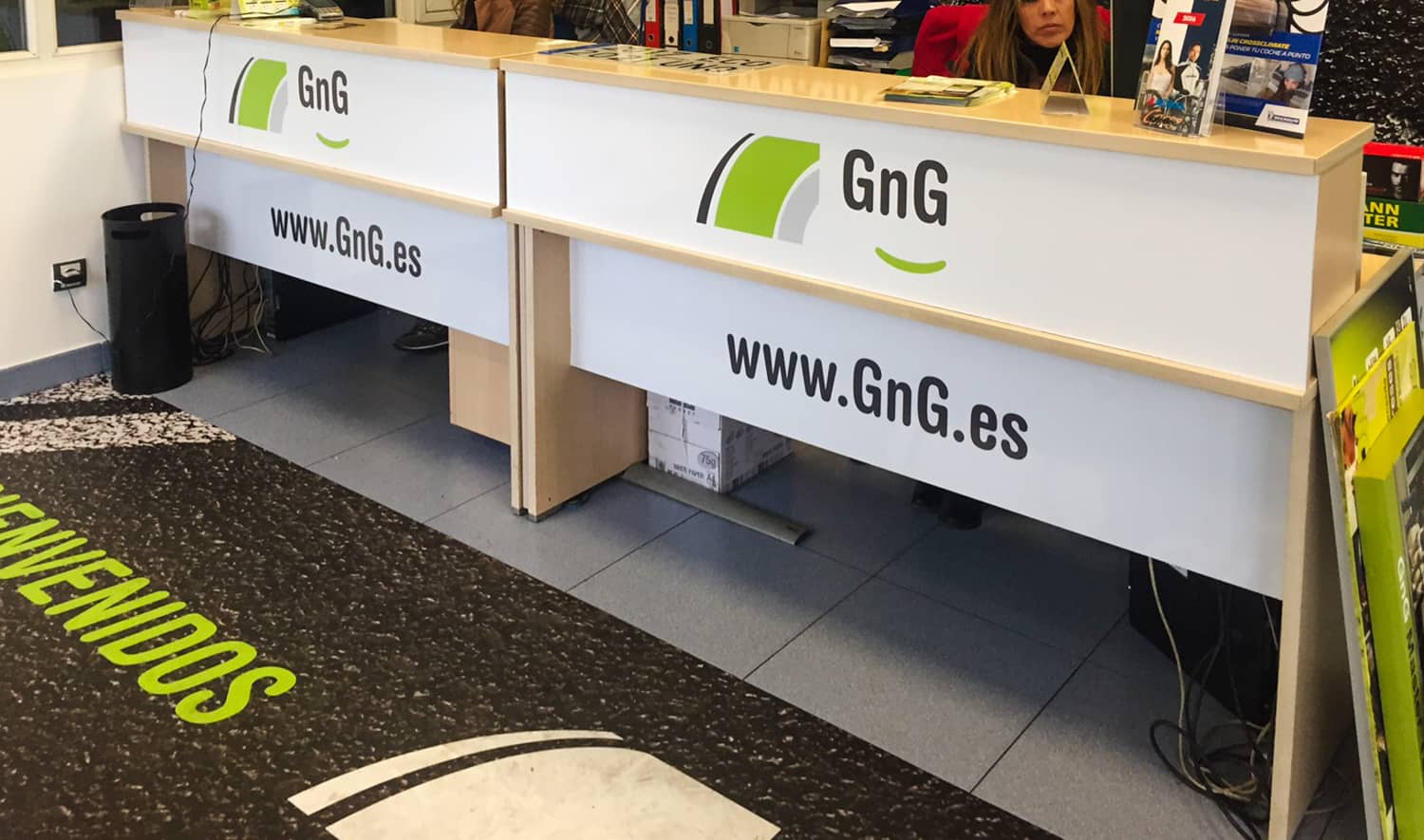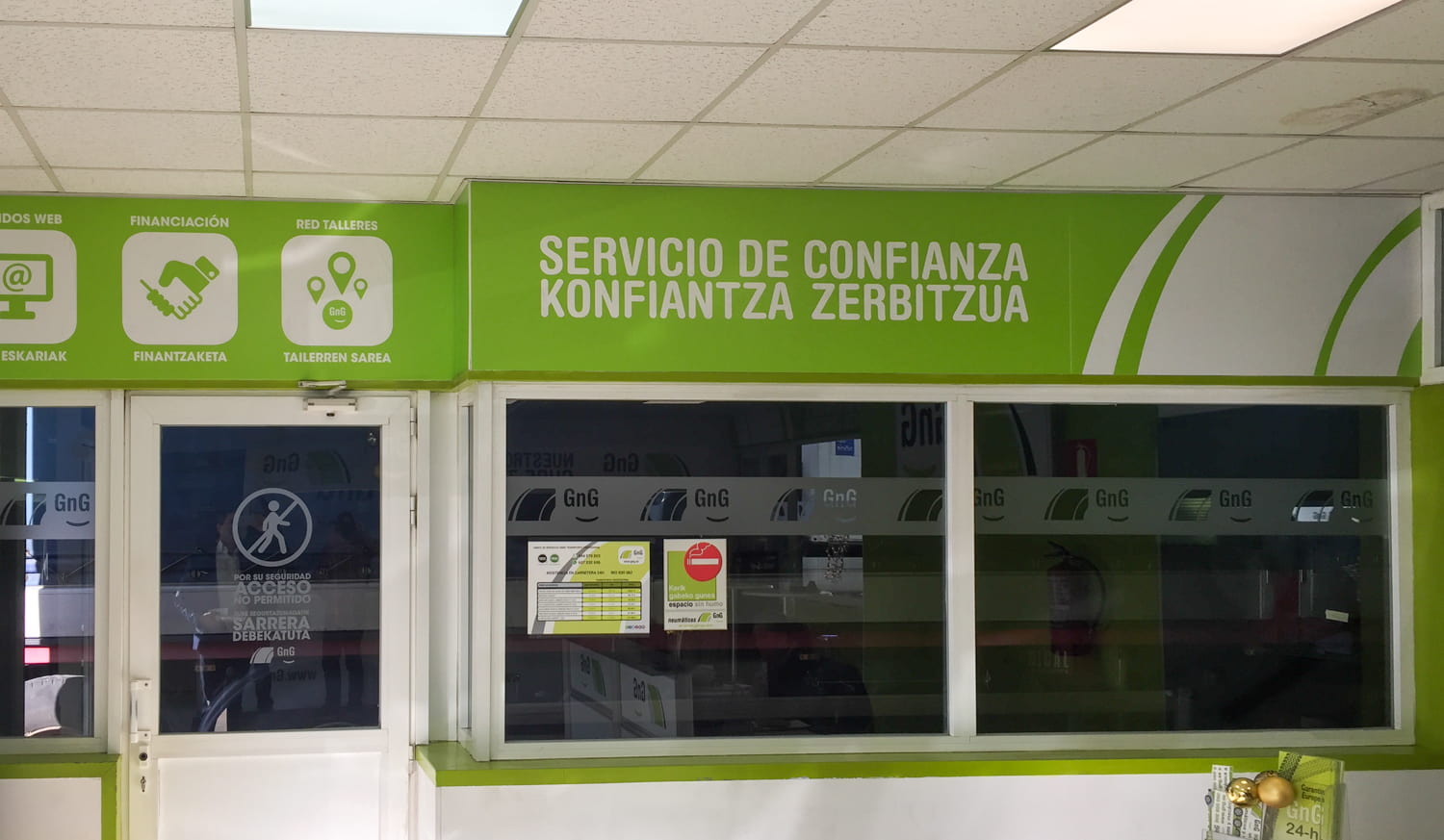 Con motivo de la decoración integral de varios talleres GNG en Vizcaya, en 254 Impresión nos encargamos de transformar cada espacio —interior y exterior— en un escaparate visual profesional acorde a la identidad de estos centros especializados en mantenimiento y reparación. Nos responsabilizamos del diseño, producción e instalación de vinilados interiores de gran formato que exhiben con claridad y estilo los servicios que ofrecen. Además, realizamos el vinilado exterior, incluyendo vinilos decorativos y cartelería impresa para puertas y ventanas, garantizando una comunicación visual coherente tanto dentro como fuera del taller. Nuestro servicio abarca desde el primer boceto hasta la colocación final, cuidando cada detalle para que cada taller refleje profesionalidad, calidad y una imagen atractiva alineada con la reputación de GNG como red líder en Euskadi y Cantabria.