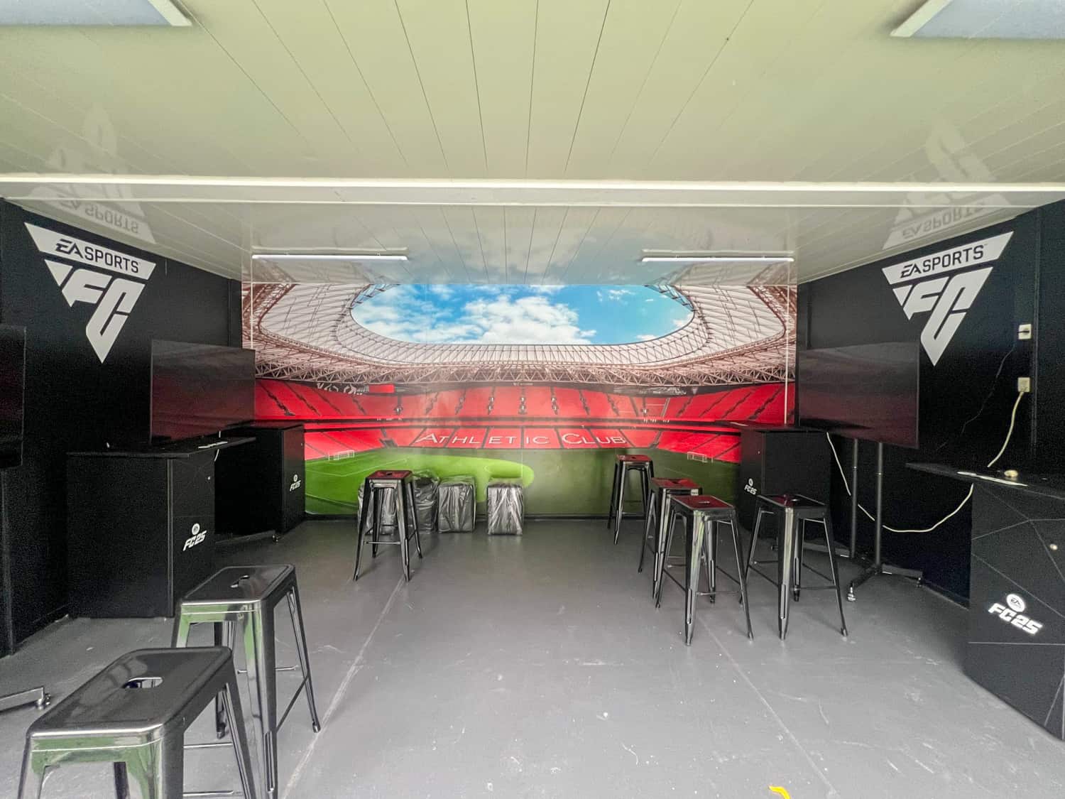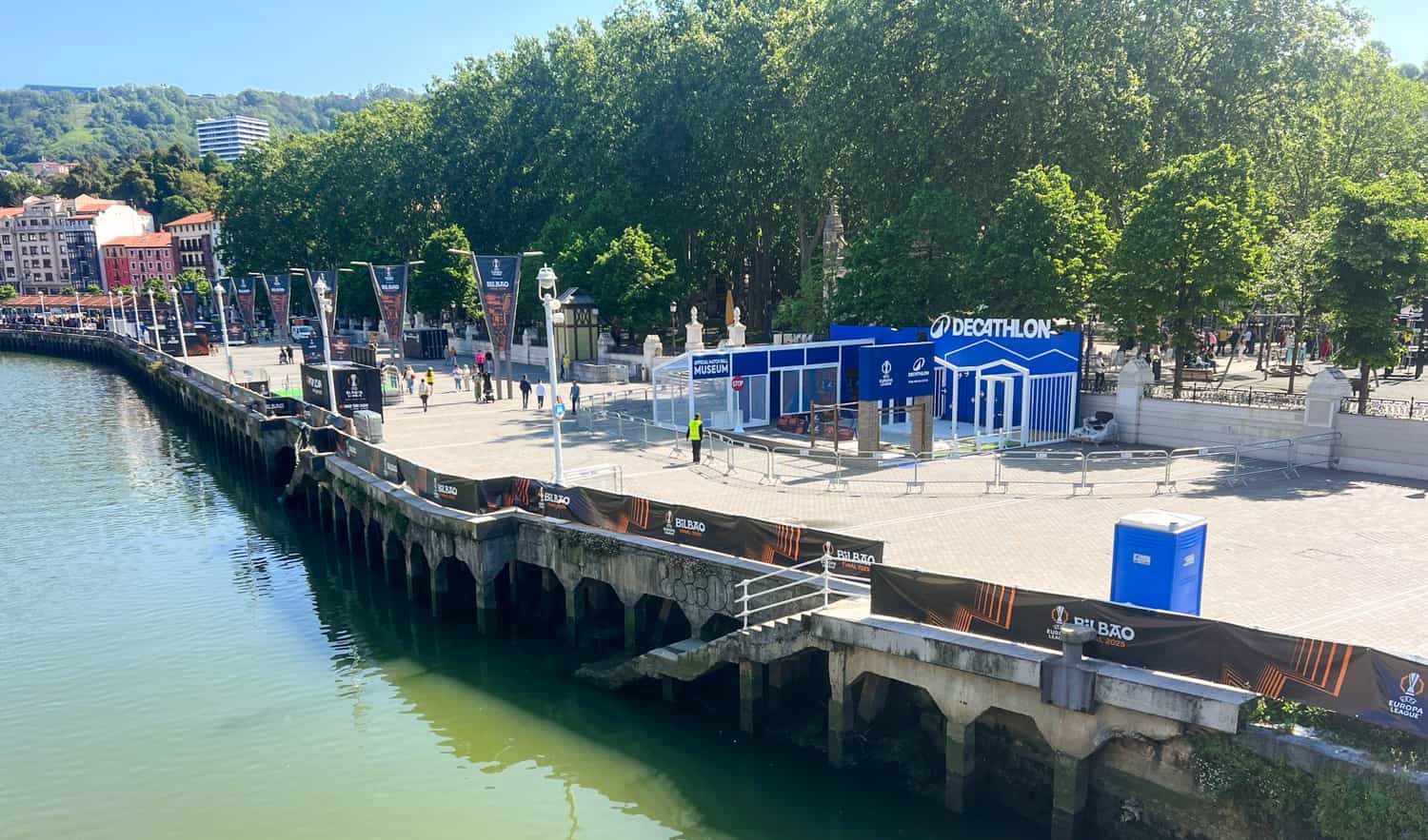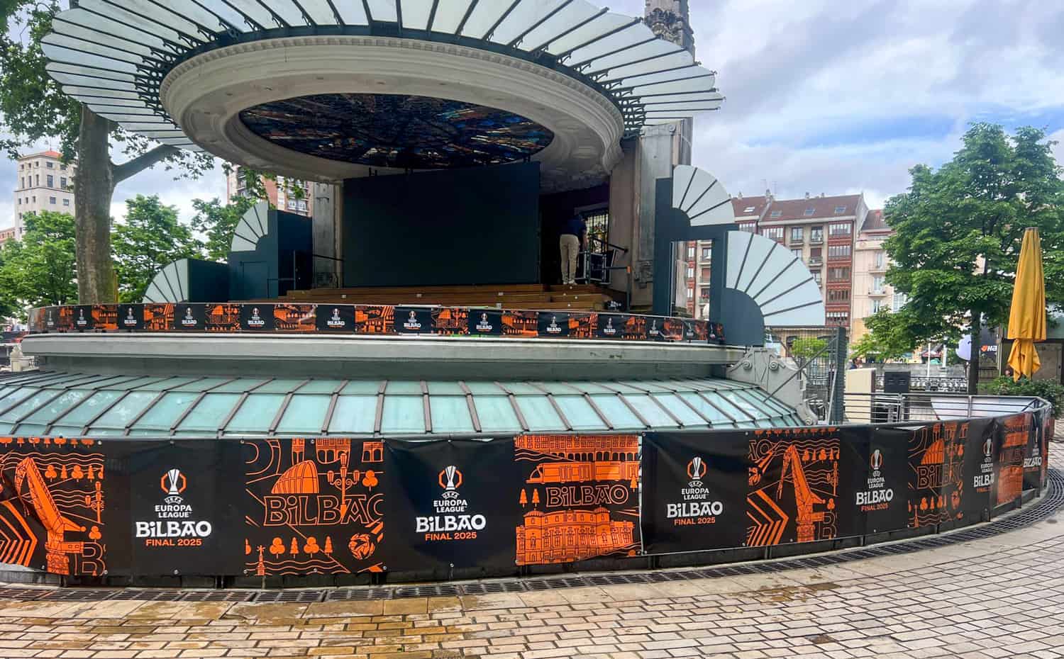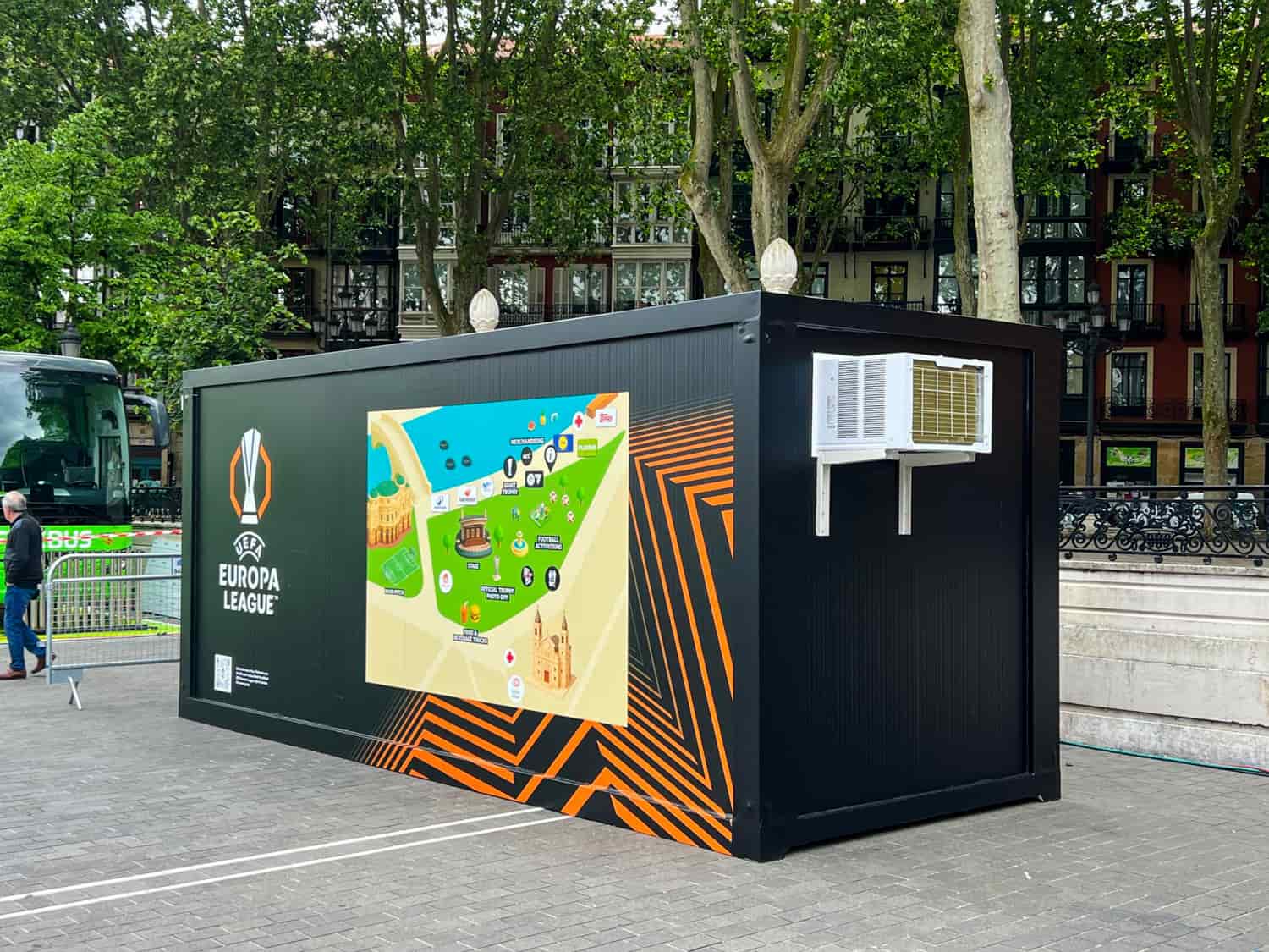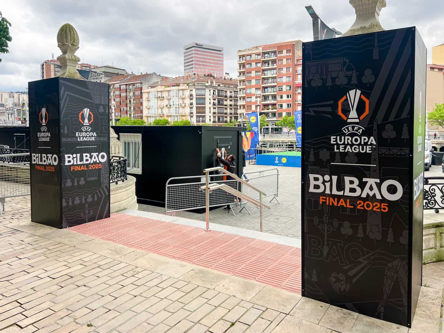 Con motivo de la celebración de la UEFA Europe League en Bilbao, tuvimos el reto de transformar la Plaza del Arenal en un espacio lleno de identidad y fuerza visual. Para ello, desarrollamos una producción gráfica de gran formato en la que combinamos creatividad, técnica y precisión. Diseñamos e instalamos tótems en Dibon, contenedores marítimos y blancos vinilados íntegramente con trasera opaca, vinilos de corte, escudos impresos sobre PVC de 5 mm y estructuras en PVC con soporte. Además, desplegamos un kilómetro de lona impresa con ojeteros que envolvió y unificó todo el espacio, creando un ambiente inmersivo y a la altura de un evento internacional de esta magnitud.